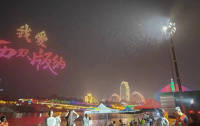 4月13日早晨,为保障龙舟比赛及夜间活动进行,支援小组克服了斜坡沙石踩滑、扛设备过江、船用设备调整等问题,将设备布置在了每一个需要的场所,龙舟比赛圆满完成。4月13日晚,放飞孔明灯活动出现意外情况,尚为支援小组协助消防部门展开紧急救援,现场人流大、环境嘈杂,支援小组以最快的速度架起了一座应急灯塔,提供照明保障。