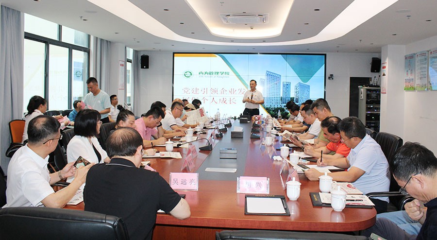 智能家居展厅参观结束后,高企联企业家们来到会议室,尚为集团董事长胡兴为企业家们就高质量党建引领企业高质量发展及个人发展主题,分享了尚为党建学习的部分核心成果。胡兴就企业发展和个人成长提出的四大问题引起了企业家们的深思,在逐步解答的过程中赢得了一阵阵的热烈掌声。
